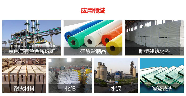 【應(yīng)用范圍】:水泥,硅酸鹽制品,新型建筑材料、耐火材料、化肥、黑色與有色金屬選礦以及玻璃陶瓷等生產(chǎn)行業(yè)。