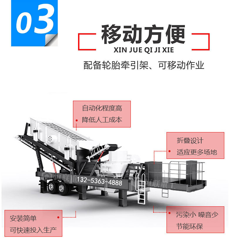 移動式制砂機配比組機較為靈活,完全可根據不同物料類型、產品要求,提供更加靈活的工藝配置,以此來滿足用戶多元化的生產需求。轉場移動性強,降低成本。